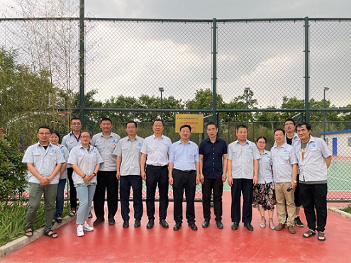隨后在西微所領導班子的陪同下參觀了西微所辦公、研發及生產現場,并在途經單位新建的職工運動中心時,由唐煜弢副主席和周吉峰副總為“職工運動中心”的正式啟用進行了揭牌。